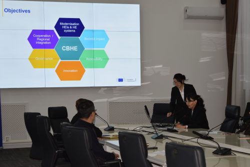 С основным докладом выступила национальный координатор программы Эразмус+ в Кыргызской Республике, которая представила обзор структуры, приоритетов и возможностей программы Erasmus+.
